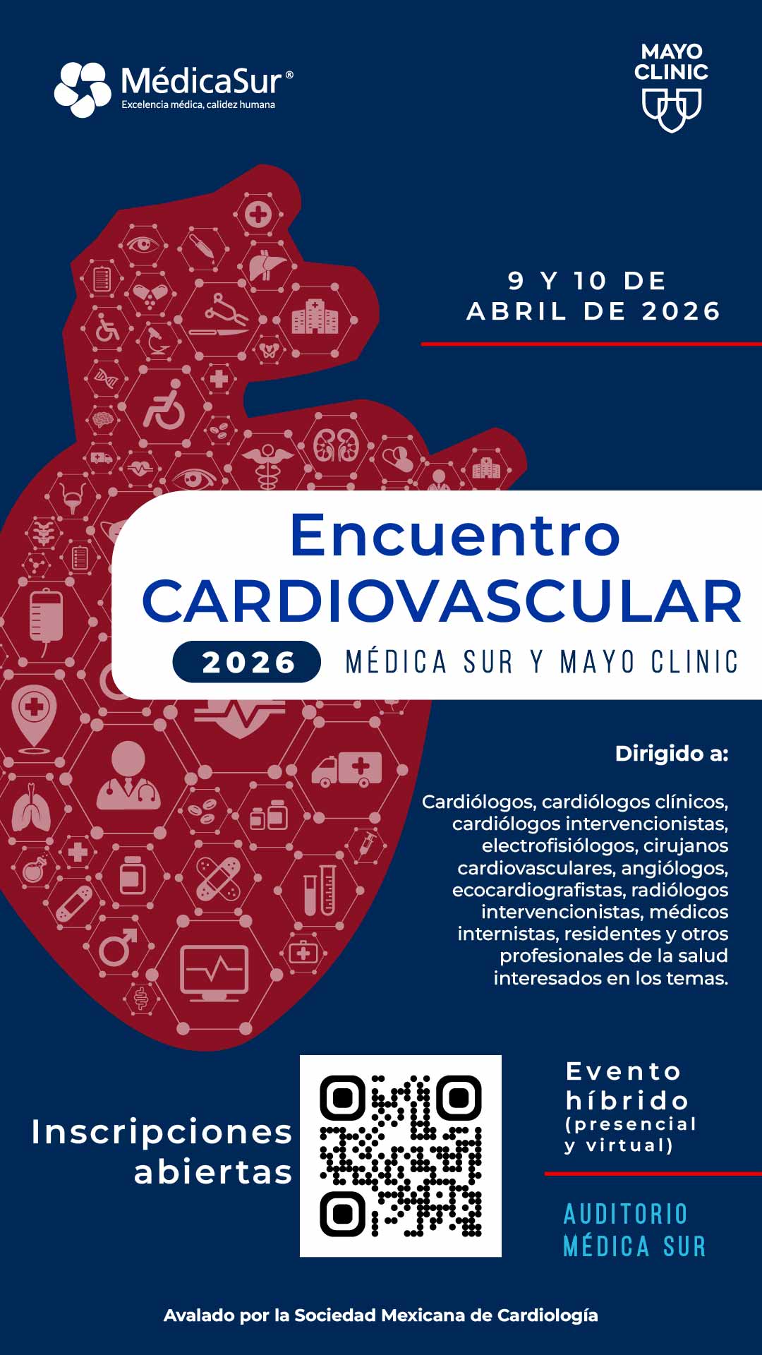 Dirigido a: Cardiólogos, cardiólogos clínicos, cardiólogos intervencionistas, electrofisiólogos, cirujanoscardiovasculares, angiólogos, ecocardiografistas, radiólogos intervencionistas, médicos internistas, residentes y otros profesionales de la salud interesados en los temas.