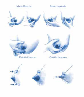 Coloca tu pecho, entre el pulgar y los dedos índice y medio justo atrás de la areola, oprime el pecho y desliza tus dedos hacia delante oprimiendo el borde de la areola, con dirección hacia el pezón.