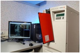 De marca Agfa, modelo CR1000El, y ubicado en el departamento de Imagen del Hospital Santa Teresa, el empleo este sistema de chasises de fósforo y su unidad de proceso permite utilizar cualquier equipo de Rayos X y obtener de él una imagen digital que es procesada para resaltar la zona de interés, imprimir las veces que sean necesarias, tenerla disponible en un archivo digital y todas las bondades que se obtienen al emigrar a la tecnología digital.