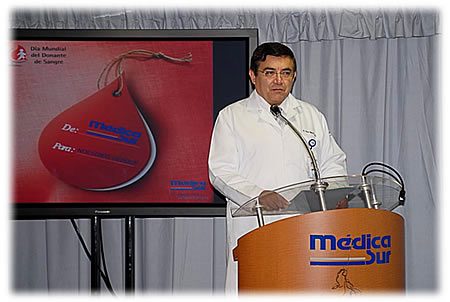 Médica Sur se participó en a la celebración del 10° Aniversario del Día Mundial del Donante de Sangre, bajo el lema “La donación de sangre es un regalo que salva vidas”, agradeciendo a nuestro héroes donantes voluntarios con una emotiva ceremonia de reconocimiento encabezada por el Dr. Héctor Alfredo Baptista González, Director del Banco de Sangre de Médica Sur.