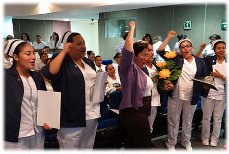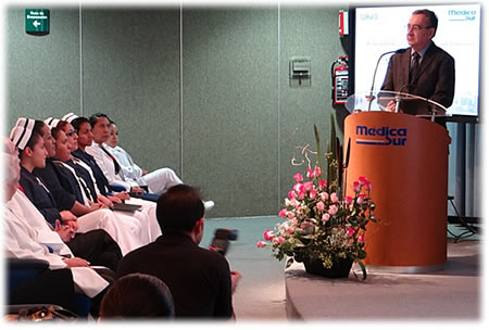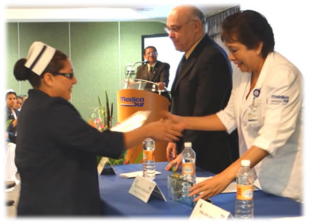 La Dirección de Enfermería de Médica Sur tuvo el honor de ser anfitrión de la entrega de reconocimientos a las alumnas: Monserrat Alamilla Sánchez, Cristina Alcántara Pintor, Cecilia Flores Varo, María Eugenia Gallegos Ugalde y finalmente con un sobresaliente promedio de 9.0 Leticia Ramirez Zarazúa, quienes cursaron su carrera en Médica Sur gracias a los esfuerzos de la Dirección de Enfermería que logró convertir este recinto en sede de la carrera.