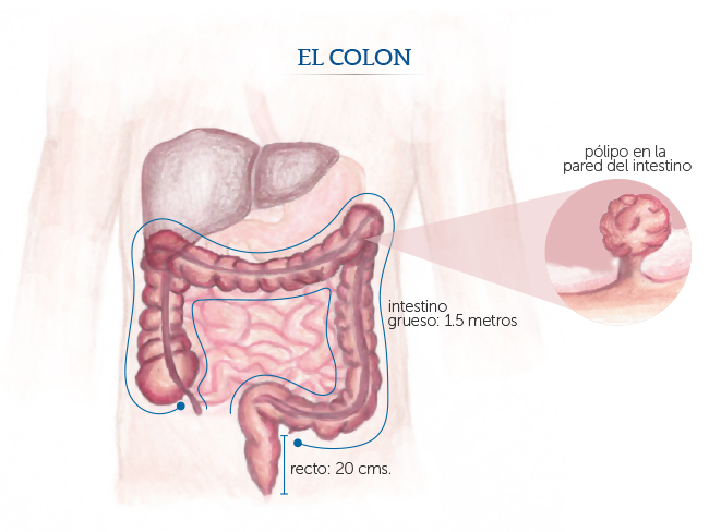 El colon y el recto son segmentos del aparato digestivo que forman un tubo largo, muscular, llamado intestino grueso. El colon está conformado por aproximadamente 1 metro y medio del intestino grueso y 20 centímetros del recto. El colon absorbe agua y nutrientes de los alimentos y convierte el resto en desechos (materia fecal). Los desechos pasan del colon al recto y luego al exterior por el ano.